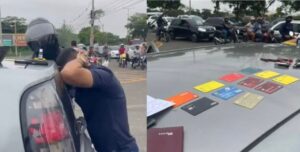 A polícia segue investigando as imagens de câmeras de segurança de residências próximas de onde ocorreu o acidente para identificar e localizar o motociclista envolvido.