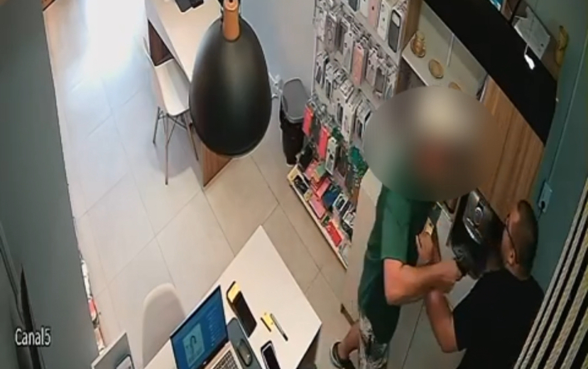 As imagens registraram dois homens entrando no estabelecimento se passando por cliente. No local, um dos suspeitos anunciou o assalto apontado uma arma para os funcionários.