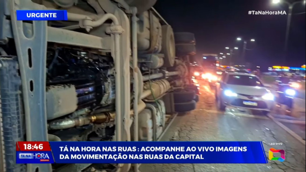 Carreta tomba na BR-135 e deixa trânsito lento, em São Luís