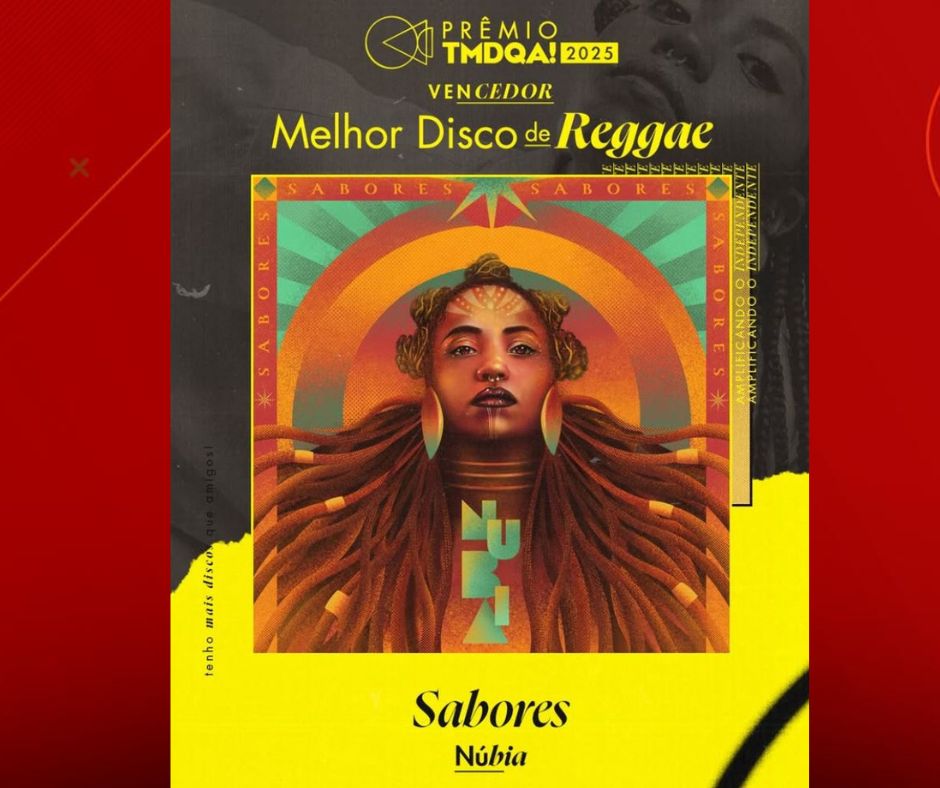A cantora maranhense, Núbia, ganhou nesta sexta-feira (5) a premiação da categoria Melhor Disco de Reggae Brasileiro do Ano no Prêmio TMDQA 2025 – Tenho Mais Discos Que Amigos, com seu álbum “Sabores”. O disco contém sete faixas com participações de cantores como Pantera Black e Célia Sampaio.