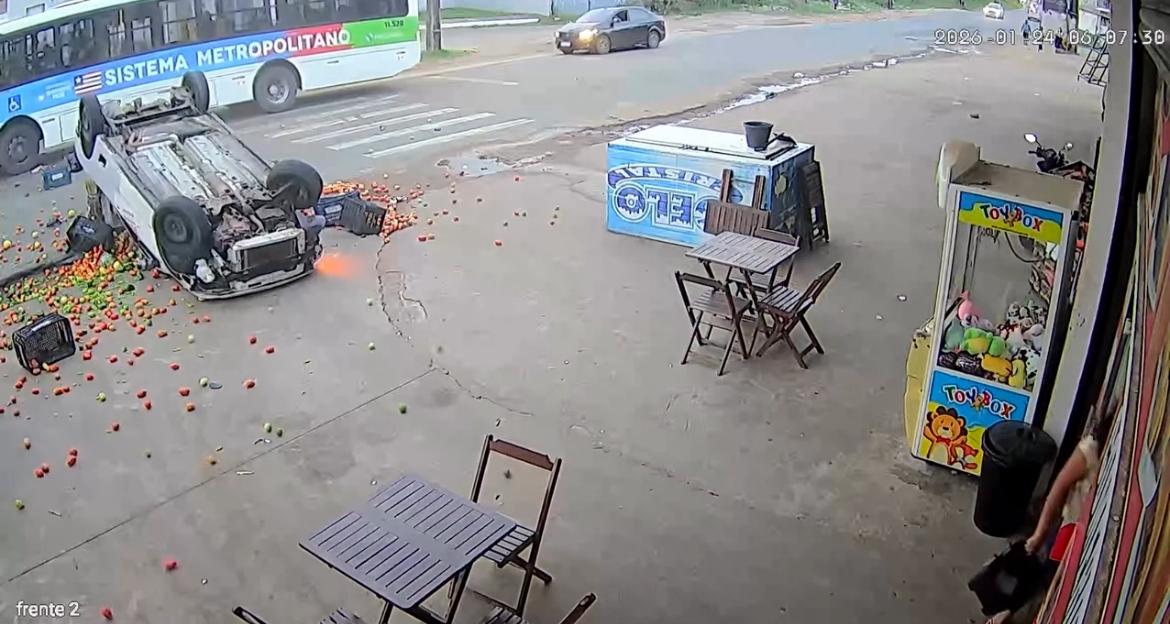 Segundo imagens de câmeras de segurança, o acidente ocorreu quando o ônibus atingiu a traseira do carro, que estava parado antes da faixa de pedestre com um carregamento de verduras. No momento da colisão, o veículo capotou e chegou a atingir uma motocicleta, que teve a sua condutora ferida.