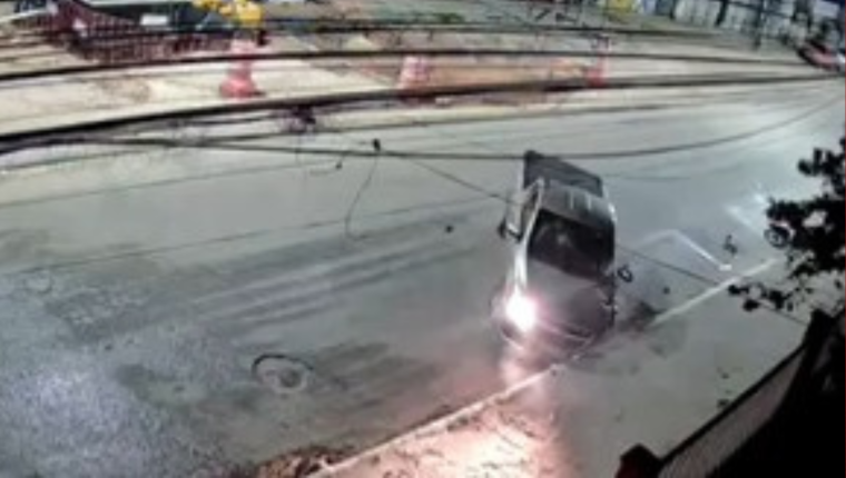 Imagens de câmeras de segurança registraram o momento do acidente.