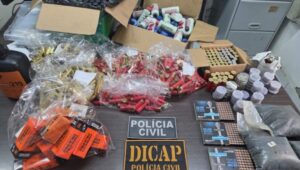 O material apreendido foi encaminhado a uma unidade policial da região, juntamente com os presos.