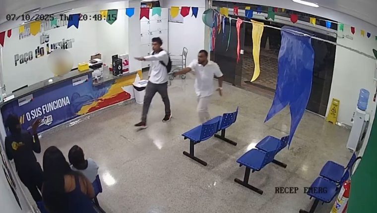 De forma inusitada, um dos envolvidos chega a cumprimentar o funcionário da recepção. Eles também chegaram a ter em mãos o celular da vigilante, mas devolveram o aparelho depois de tomarem o colete e a arma. Em seguida, guardaram os itens em uma mochila e saíram da maternidade.