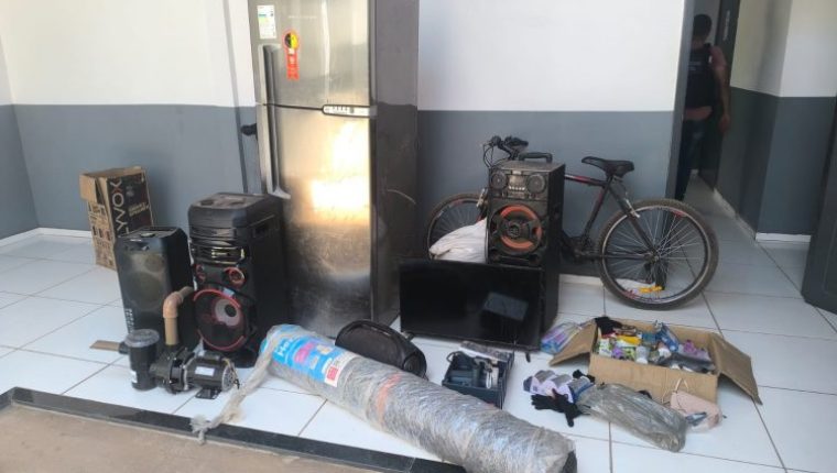 No local, os policiais civis encontraram uma vasta quantidade de objetos de origem ilícita, que foram apreendidos. Entre os itens recuperados, que são possivelmente provenientes dos crimes investigados, estão televisores, aparelhos de som, bicicleta, geladeira, bombas de água, ferramentas e produtos de cosméticos.