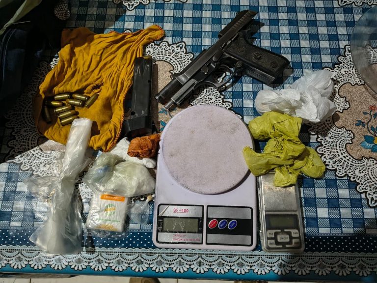 Segundo com a PC-MA, foi apreendido com o investigado uma pistola calibre .40, diversas munições, porções de drogas, balança de precisão e materiais utilizados para embalar os entorpecentes.