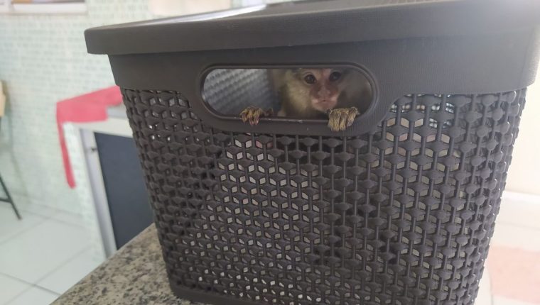 O animal estava dentro de uma caixa plástica, coberto por um lençol e com uma perna amarrada. A passageira que o levava não possuía nenhuma documentação para o transporte e afirmou que recebeu o macaco de um tio em São Luís.