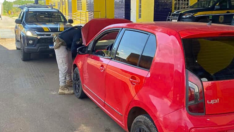 O carro, que utilizava placas de Brasília (DF), foi abordado e, durante a verificação, os policiais constataram diversas irregularidades, como placa fora do padrão, chassi com indícios de lixamento e motor adulterado.