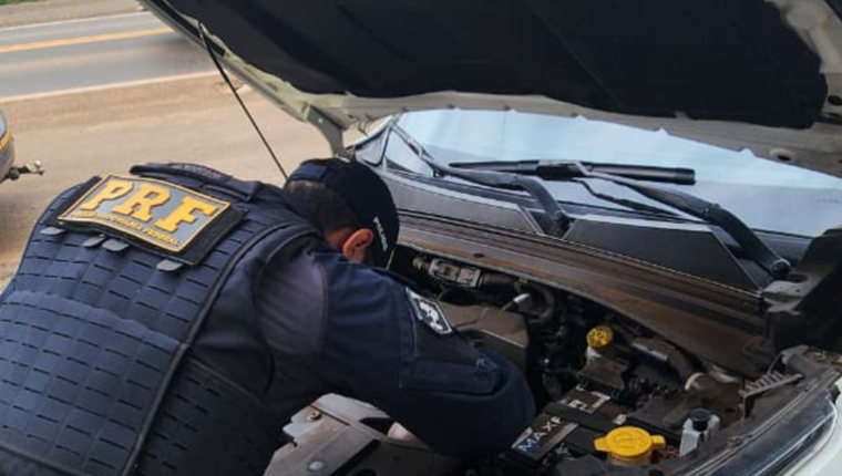 Segundo informações da PRF, durante uma fiscalização, agentes abordaram o veículo que apresentava placas de outra unidade da federação. Uma verificação minuciosa nos elementos de identificação, como chassi e motor, revelou sinais claros de adulteração, incluindo marcações irregulares e uso de instrumentos abrasivos.