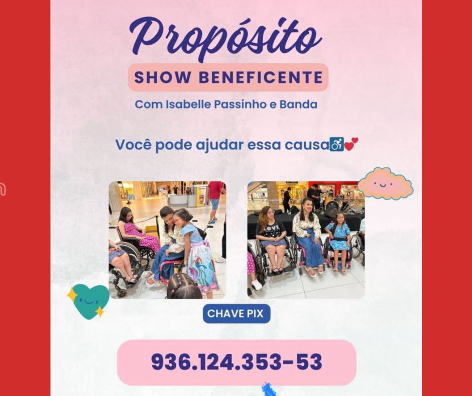A 2° Edição do Projeto Propósito promoverá no próximo domingo (21) uma ação solidária em prol ao Dia Nacional da Luta de Pessoas com Deficiência no São Luís Shopping, com a missão de arrecadar recursos para esse público. O evento contará com diversas apresentações musicais, como a cantora Isabelle Passinho, a partir das 16h (horário de Brasília).