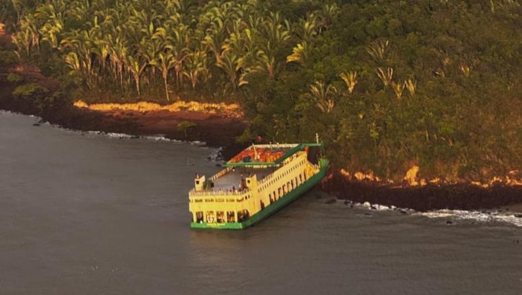 Confira abaixo imagens registradas por passageiros do ferryboat encalhado: