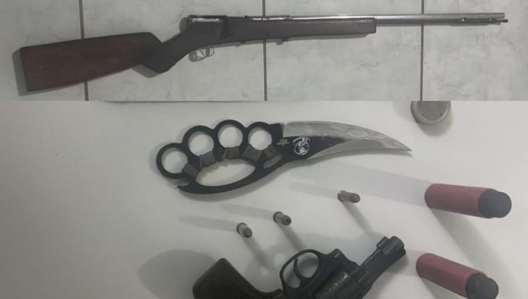 A Polícia Civil informou que foram apreendidas duas armas de fogo, sendo uma espingarda e um revólver.