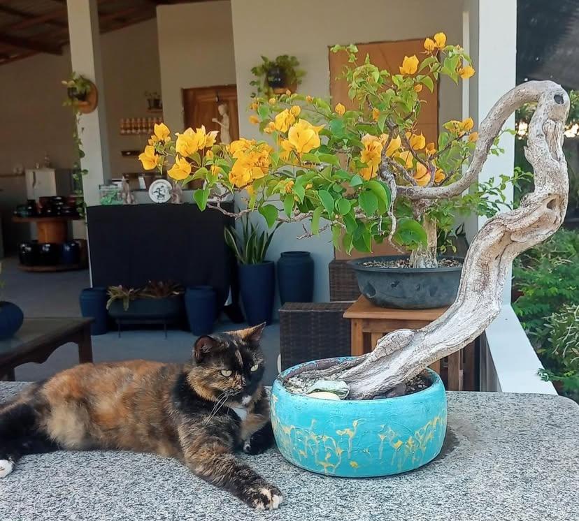 “A ideia de abrir a loja surgiu do incentivo de amigos praticantes da arte do bonsai e do gosto que tenho em fazer bonsai e de ajudar os outros a fazerem, além de um conjuntos de situações pessoais ligadas ao momento da pandemia da Covid”, relata.