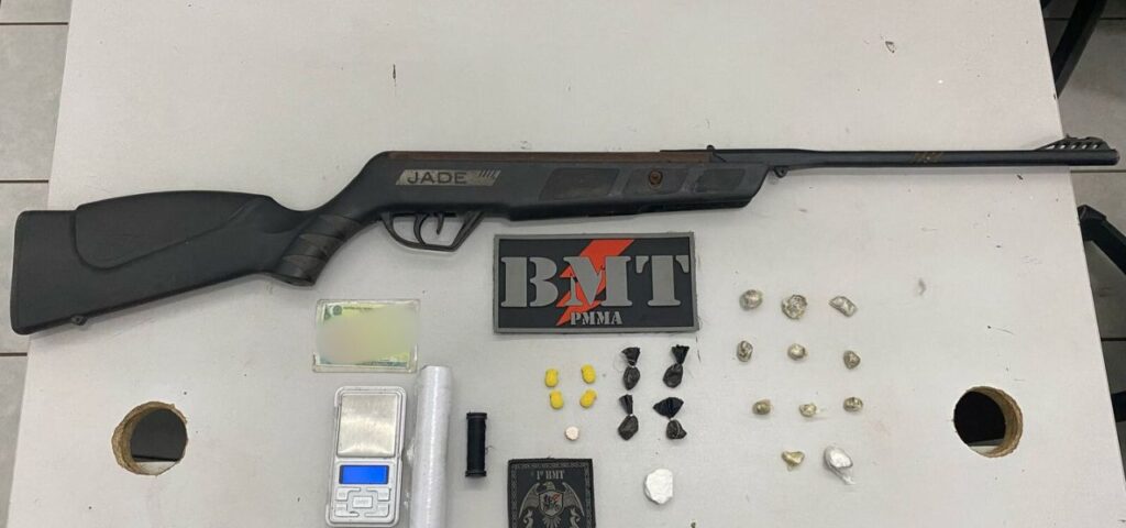 Um homem foi preso neste domingo (27), suspeito de tráfico de drogas e porte ilegal de arma de fogo, na Vila Passos, em São Luís. Durante a abordagem, foram apreendidas drogas e um rifle calibre 22.