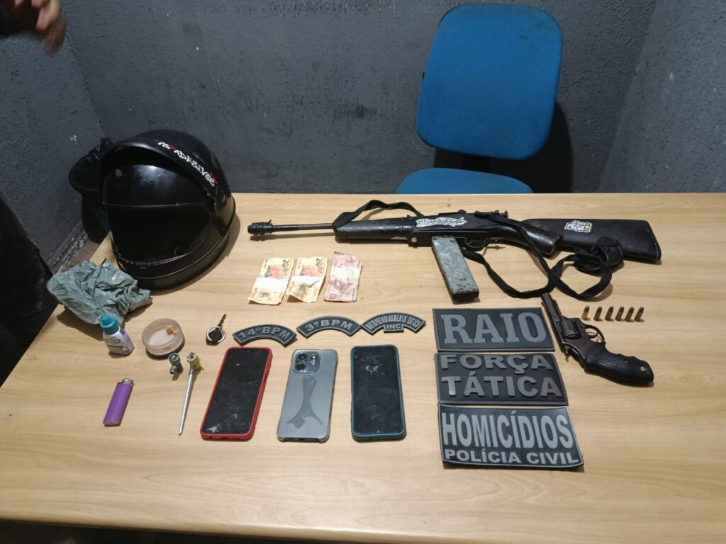 Uma outra equipe da PM se dirigiu a um segundo endereço, onde supostamente estariam escondidos os demais envolvidos no crime. Lá, os agentes deram o comando para que os moradores abrissem a porta e, após autorizados, entraram na casa e identificaram os suspeitos. As buscas também resultaram na descoberta de uma espingarda caseira, duas pedras de crack, dois cachimbos e uma motocicleta.
