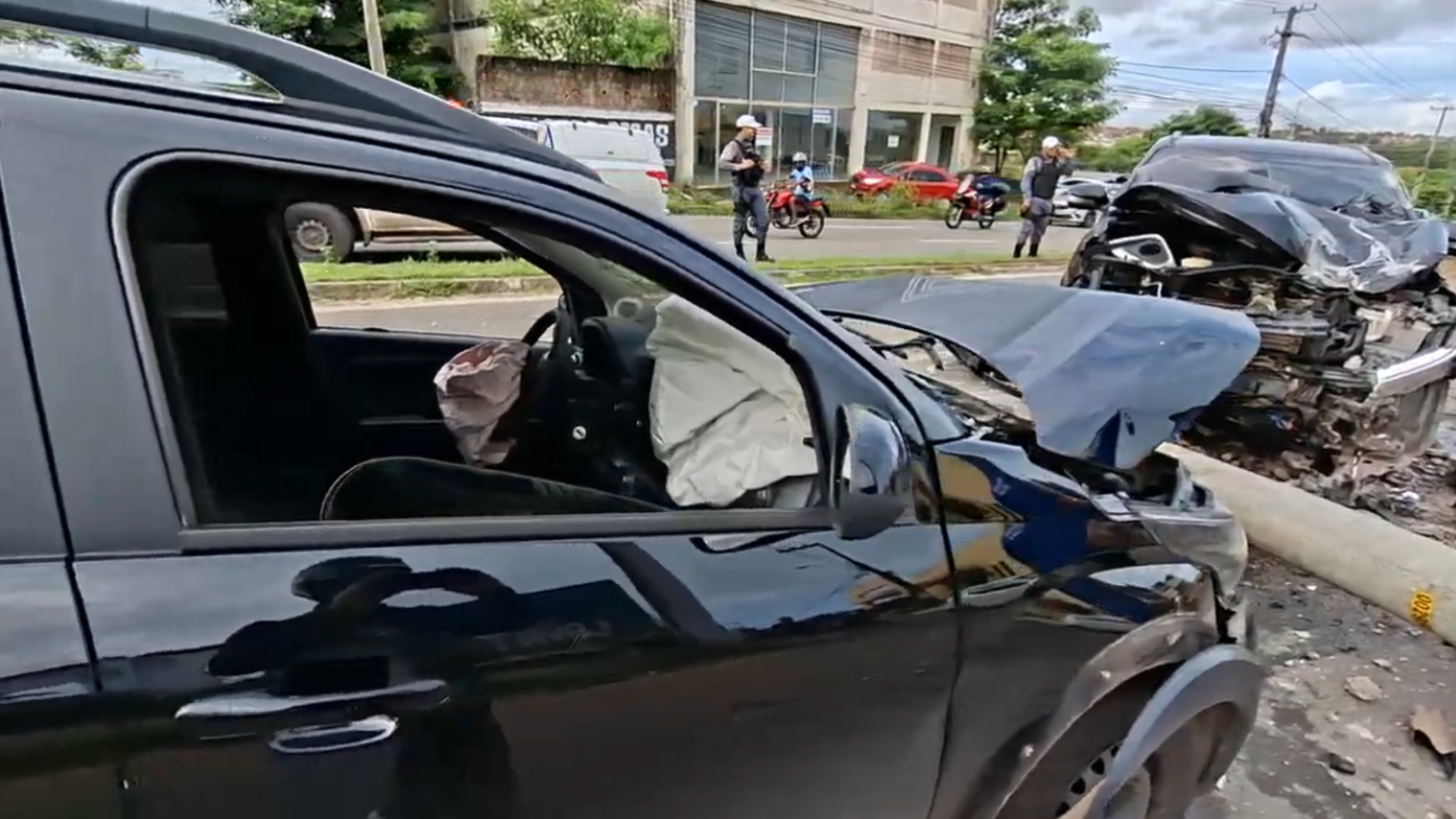 De acordo com as primeiras informações, a caminhonete perdeu o controle, invadiu o canteiro central e colidiu contra um poste. Em seguida, o veículo atingiu o outro carro.