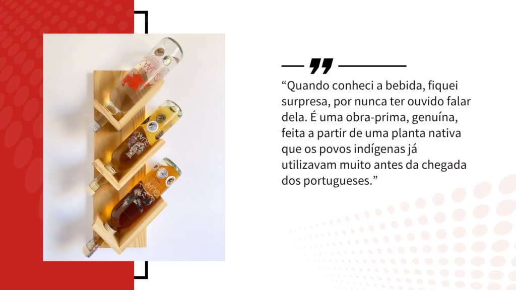 “Fazia experiências por curiosidade e encantamento. Quando experimentei a tiquira, fiquei fascinada com o sabor e a originalidade. Com o tempo, percebi que poderia transformar isso em um negócio profissional”,
