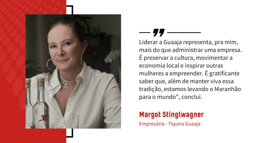 Transformar uma tradição secular em um empreendimento inovador foi o caminho trilhado pela ex-advogada, Margot Stinglwagner — 55 anos — empreendedora que apostou na força cultural da tiquira para construir um negócio de alcance internacional. À frente da destilaria Guaaja, instalada em Santo Amaro (MA), ela participa de todas as etapas do processo produtivo — da escolha dos insumos à distribuição da bebida.