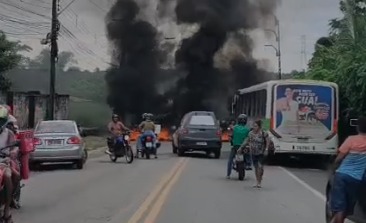 Moradores da região do Portal do Paço realizaram uma manifestação na Estrada de Ribamar, na tarde desta segunda-feira (27), na Grande Ilha. Parte da via foi interditada com pneus.