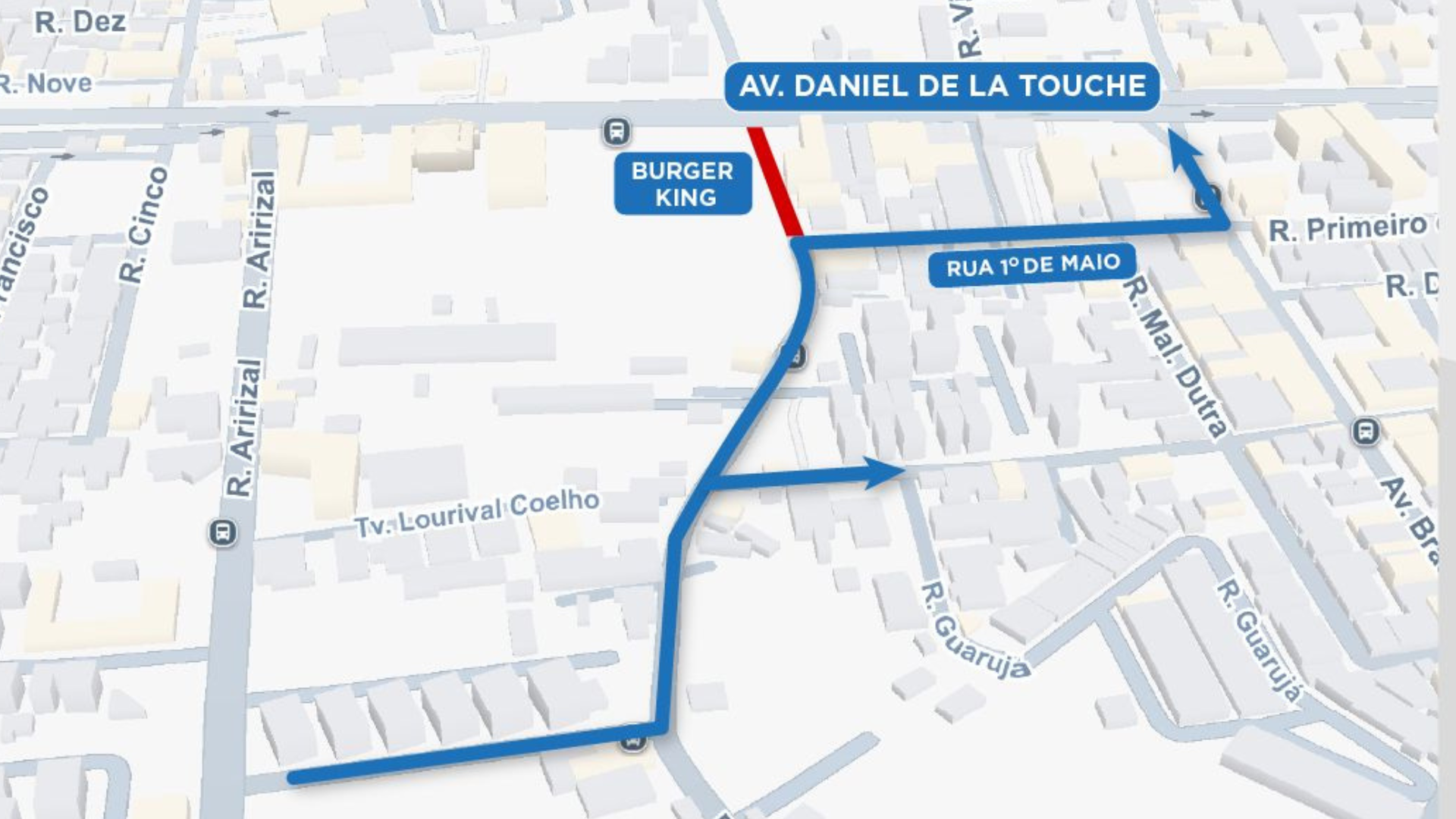 Durante o período de interdição, motoristas que saem do bairro em direção à Avenida Daniel de La Touche devem utilizar rotas alternativas. A orientação é seguir pela Rua 1º de Maio ou pela Rua da Assembleia, com acesso à Avenida Brasil.
