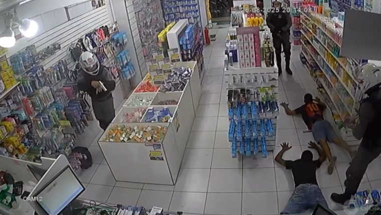 O caso ocorreu por volta das 20h10. De acordo com a PM, a guarnição avistou na frente da farmácia um homem montado em uma motocicleta sem placa e resolveram abordá-lo. Nesse momento, os agentes perceberam que outras duas pessoas estavam dentro da farmácia cometendo o assalto e entraram dando voz de prisão.