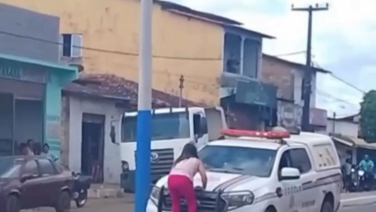 Segundo um vídeo que circula nas redes sociais, a prisão ocorreu em flagrante. As imagens também mostram a mulher correndo atrás da viatura, tentando impedir a prisão do marido.