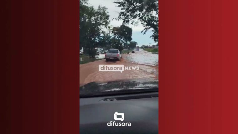 Em vídeos gravados por motoristas, é possível ver o grande volume de água acumulado na rodovia, dificultando a passagem dos veículos.