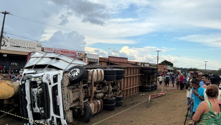 Homem de 37 anos morreu esmagado pela carreta que tentou desviar e acabou tombando.