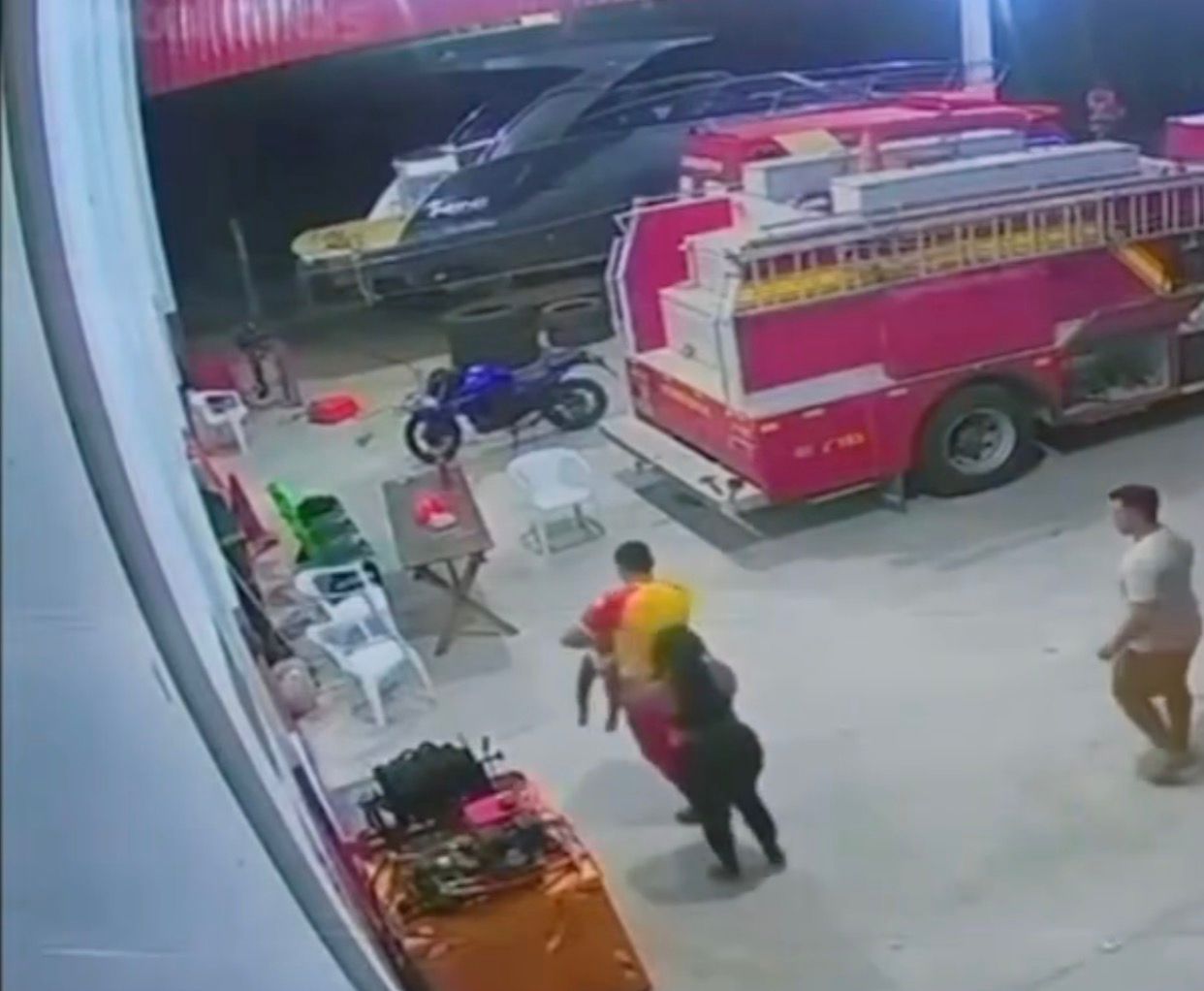 Todo o resgate foi registrado em vídeo. A mãe da criança chega com ela nos braços pedindo socorro.