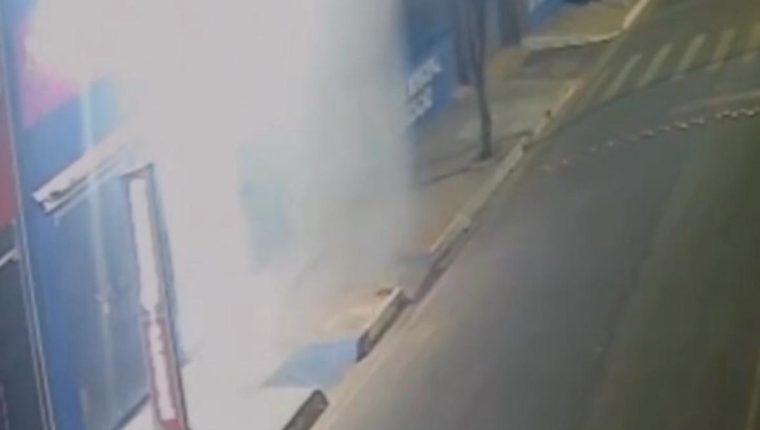 No vídeo é possível observar que os homens se aproximam em uma motocicleta e um deles fica como piloto de fuga enquanto o outro é responsável pelos explosivos.