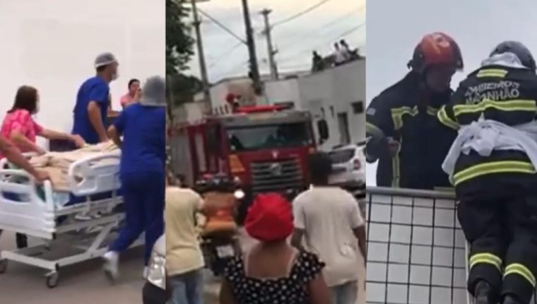 Imagens feitas por pessoas no local mostram o desespero e a agilidade dos funcionários do hospital em prestar os primeiros socorros aos pacientes em consulta e internados.