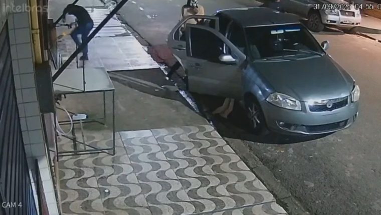 Nas imagens, é possível ver os indivíduos mascarados descendo de um veículo. Eles arrombaram o estabelecimento, recolheram mercadorias rapidamente e as colocaram no porta-malas do carro antes de fugir.